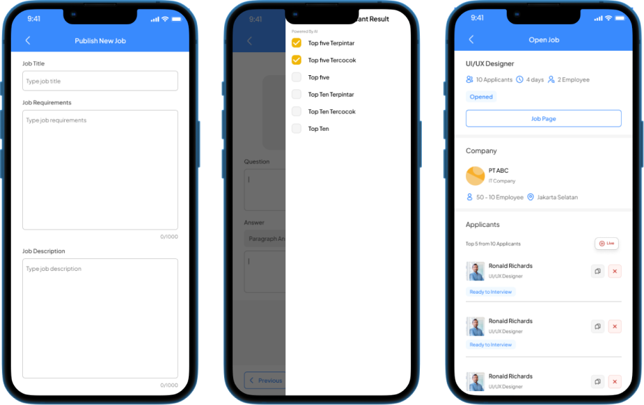 Semua proses interview dilakukan melalui koordinasi dengan recruitment partner, bukan langsung oleh sistem AI, demi menjaga transparansi dan akuntabilitas.
